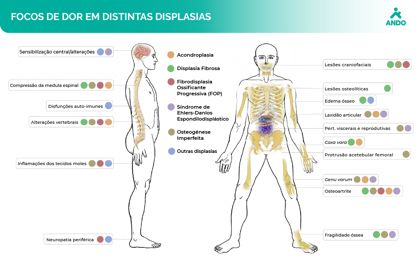 Fig. 2. Focos de dor em distintas displasias ósseas.