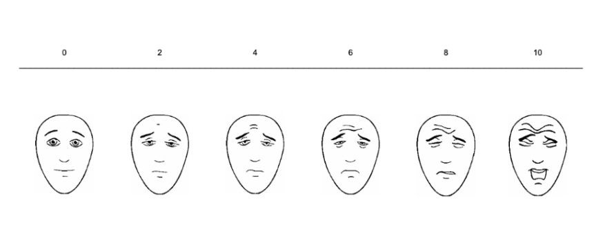 Hicks CL, et al. The Faces Pain Scale-Revised: toward a common metric in pediatric pain measurement. Pain. 2001 Aug;93(2):173-183. doi: 10.1016/S0304-3959(01)00314-1. PMID: 11427329.