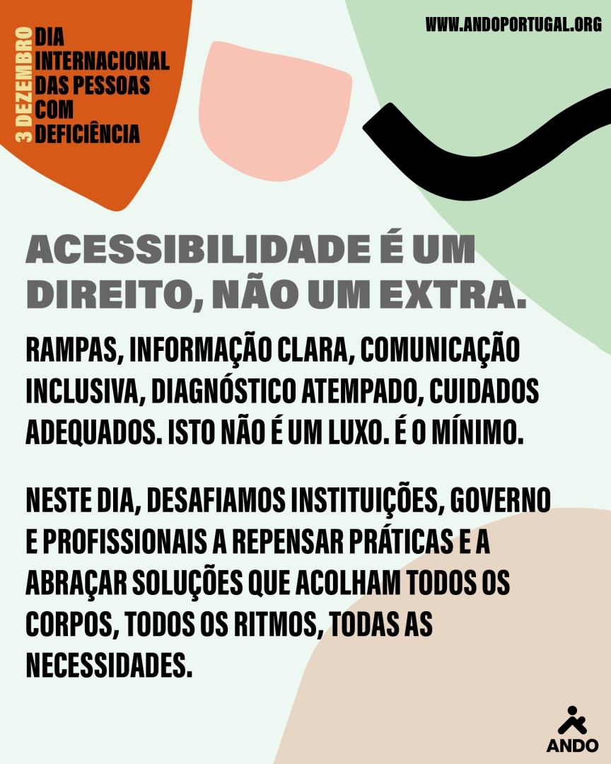 A ANDO junta-se ao INR e a todas as entidades envolvidas e convida todos a conhecer a programação, a participar nas atividades (presenciais ou online) e a refletir sobre como podemos contribuir para uma sociedade mais inclusiva, justa e acessível a todas as pessoas, independentemente das suas capacidades.