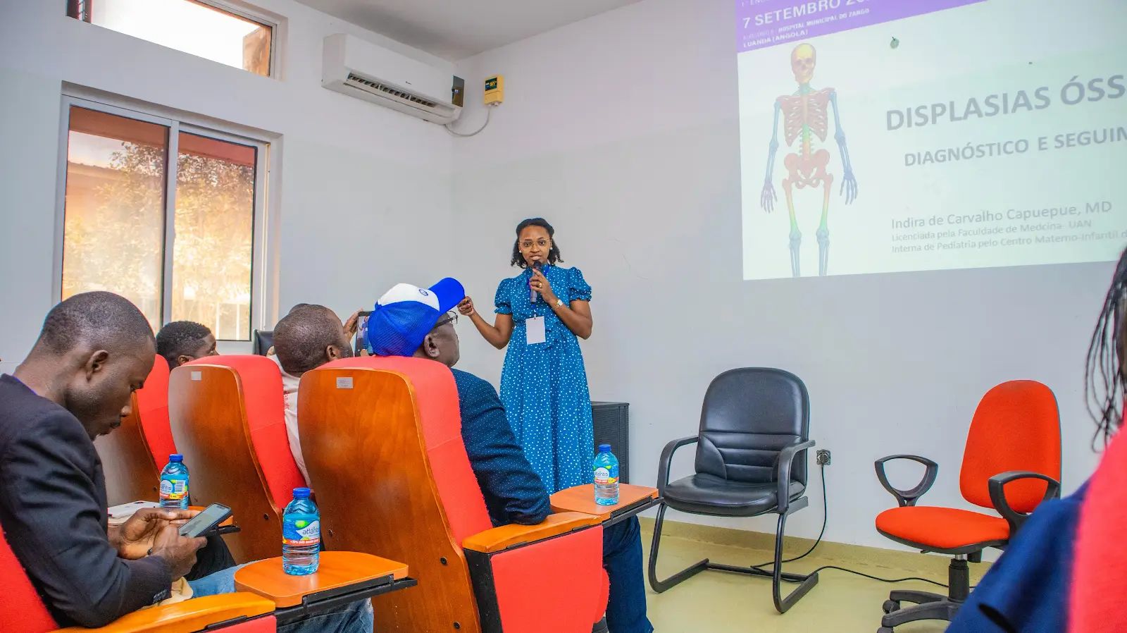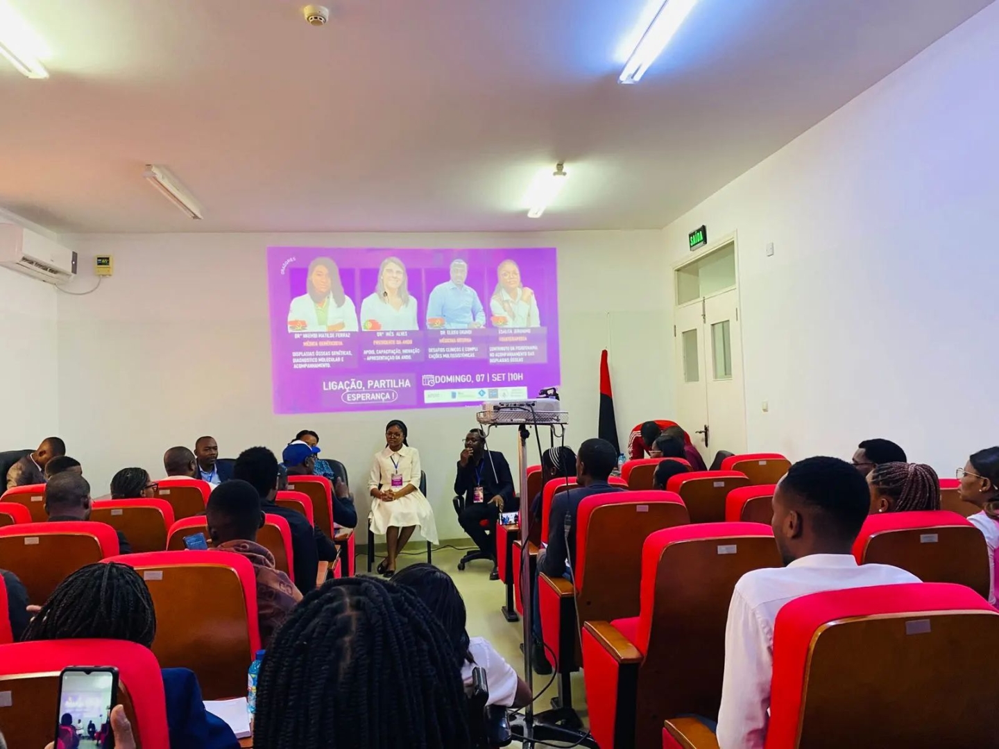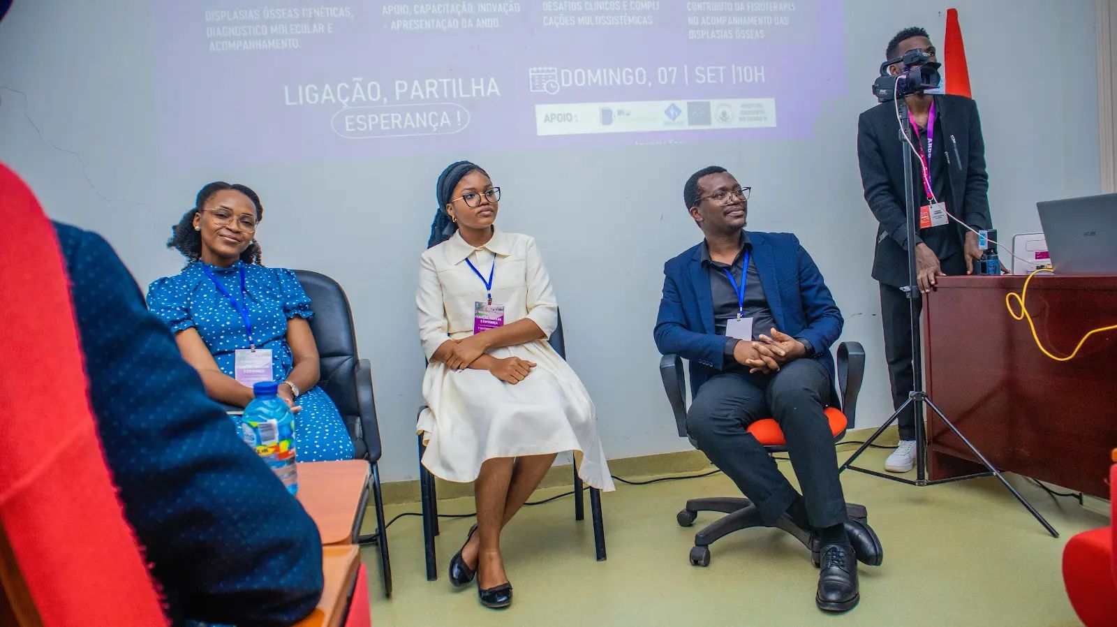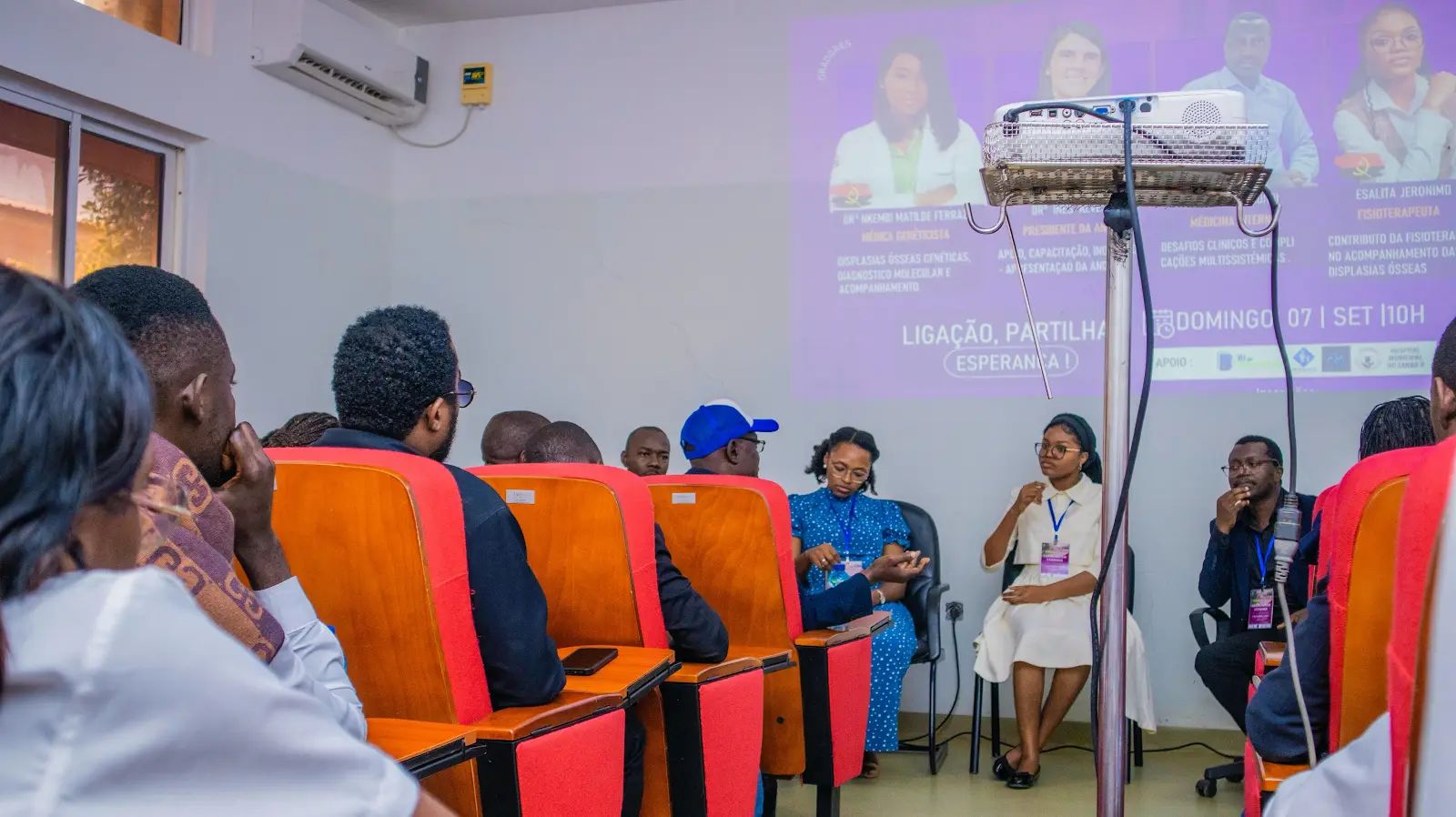 "O primeiro painel contou com a intervenção da Dra. Indira Capupue, pediatra que abordou os aspetos gerais das displasias ósseas, incluindo genética, diagnóstico molecular e acompanhamento clínico. Na sequência, o Dr. Elizeu Ekundi apresentou os desafios clínicos e as complicações multissistémicas, com a Dra. Idalina a complementar a discussão. A elevada interação do público e o número de questões levantadas reforçaram a importância do tema e a necessidade de promover mais encontros dedicados às displasias ósseas no país.