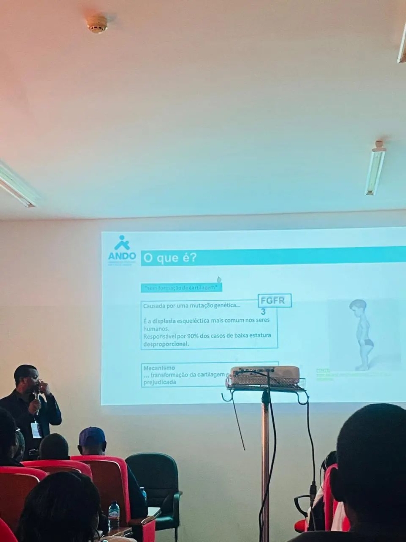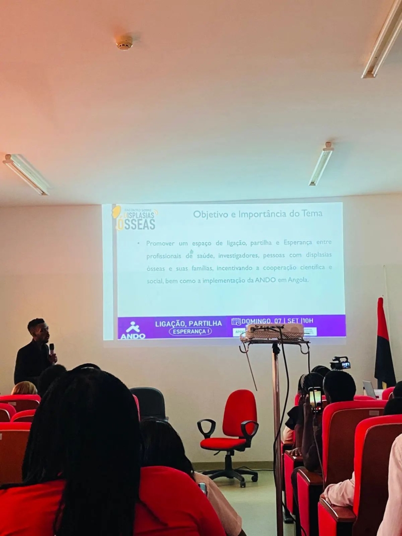 Frederico Tchimbenje, enfermeiro intensivista e estudante de Medicina na Universidade Privada de Angola, foi convidado pela ANDO para participar e apresentar no 3.º Congresso ANDO o seu estudo de mapeamento do conhecimento sobre displasias ósseas em Luanda. Após esta oportunidade, Frederico organizou o 1.º Encontro de displasias ósseas em Angola, dia 7 de setembro de 2025, no Hospital do Zango, Luanda (Angola). Veja o álbum de fotografias do envento no fim desta notícia.